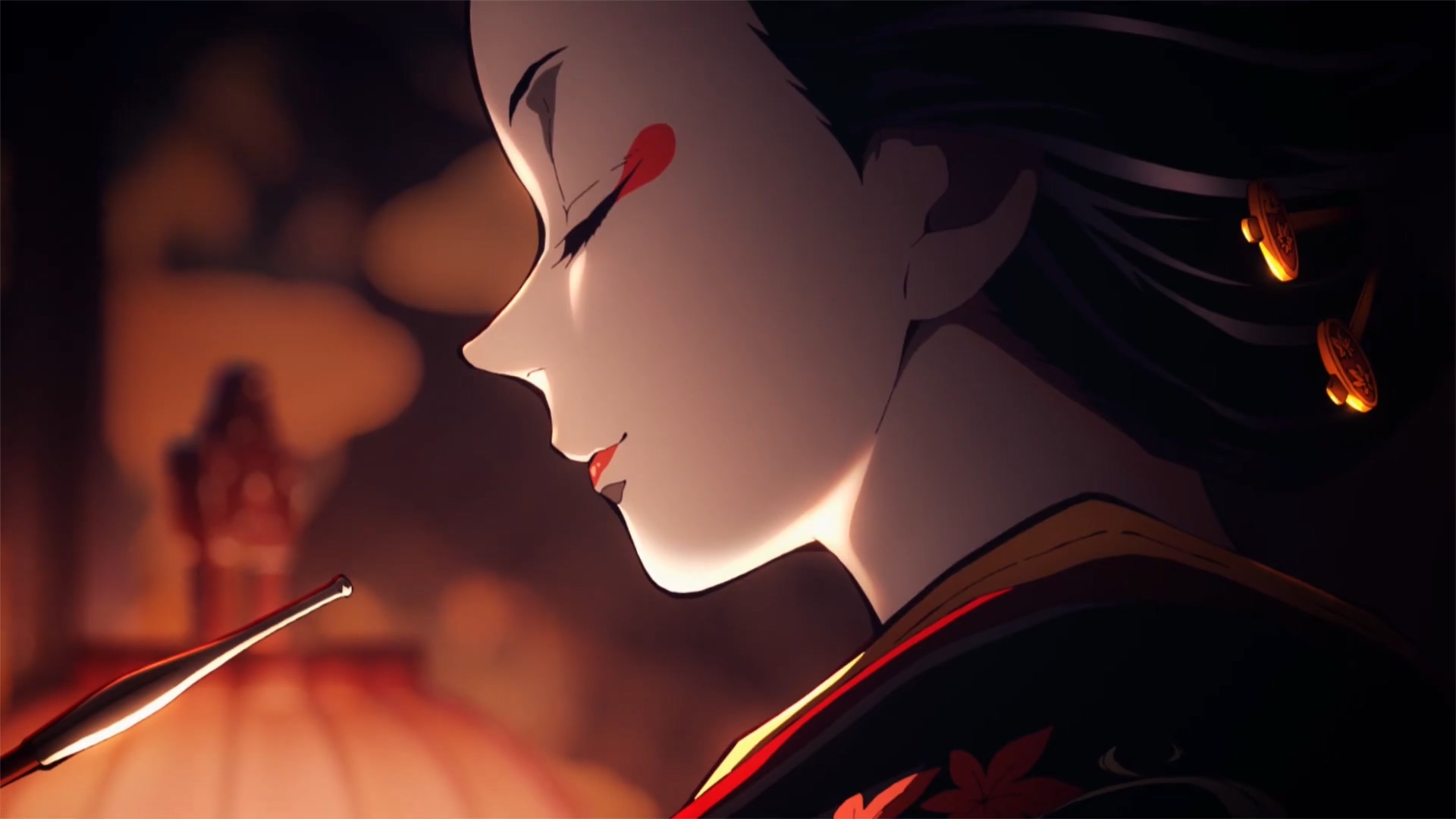코쥬로의 죽음으로부터 4개월 후, 음주 우즈이 텐겐은 도깨비가 요시와라 유곽에 있다는 정보를 얻고 유곽에 잠입시킨 아내들의 연락이 끊기자 잠입 임무에 쓸 여성 대원이 필요하다며 나비 저택에서 아오이와 나호를 상관 명령으로 억지로 데려가려고 하지만, 이런저런 사정으로 탄지로, 젠이츠, 이노스케가 여장을 해서 그의 아내가 잠입한 가게에 잠입한다.